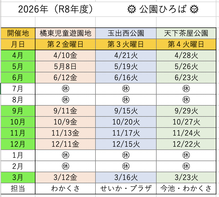 ☆「天下茶屋公園(岸里東1-15-18)」での公園ひろば